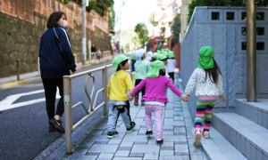 日本东京一家幼儿园,老师护送幼儿回教室。 视觉中国法治周末特约撰稿 陈洋